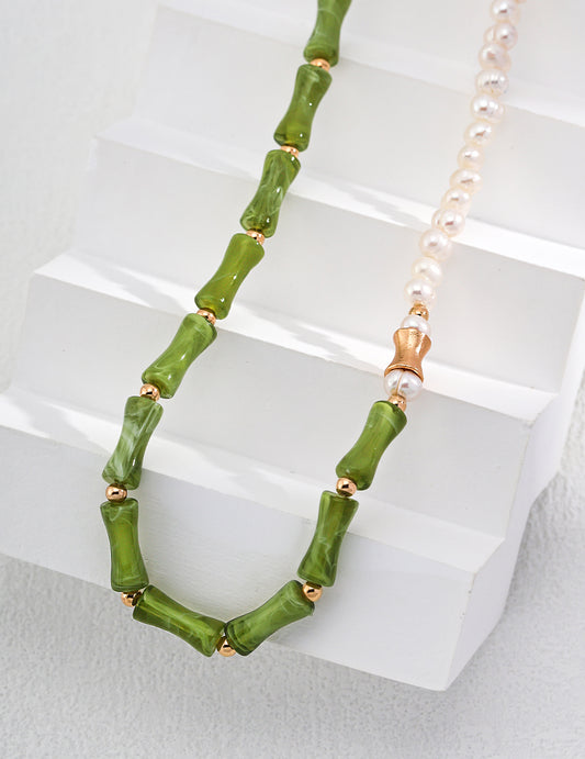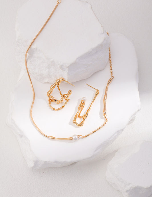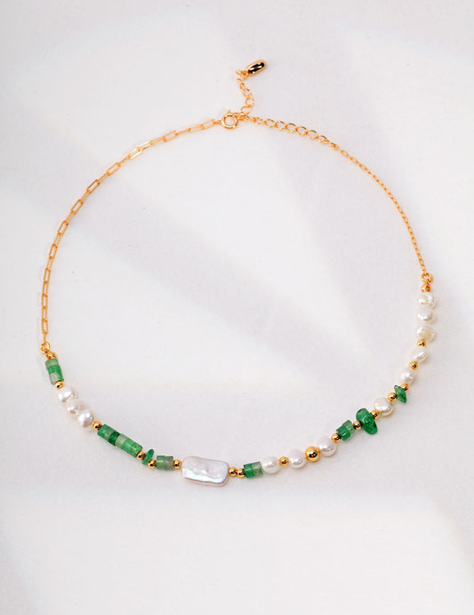 The name Elemar is a melding of complementary concepts: Ele-mar(a). Ele stands for the natural Elements. Mara, in Buddism, is associated with death, rebirth, and desire. Together, they symbolize essential being. The flowing and asymmetrical beauty of mountains and rivers is effortless, as are we. This is why we seek out components that you can see are created by nature. We chose unpolished, naturally shaped Keshi pearls to adorn chains designed to flow like water. Our two special gemstones, Aventurine and Zircon, are cherished in Asian culture for their ability to protect and balance energy.