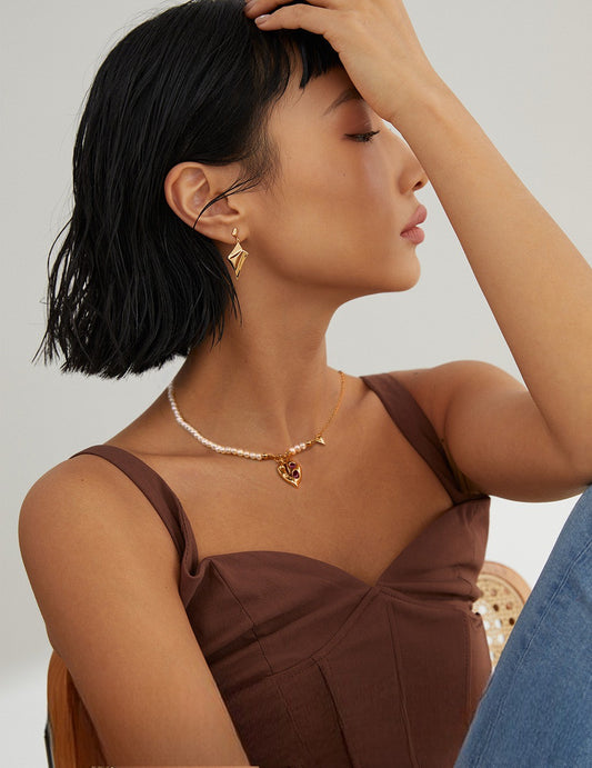 Strung with Keshi pearls, the heart-shaped pendant is infused with the potent energy of Zircon, merges mindfulness of style with enhanced energy.